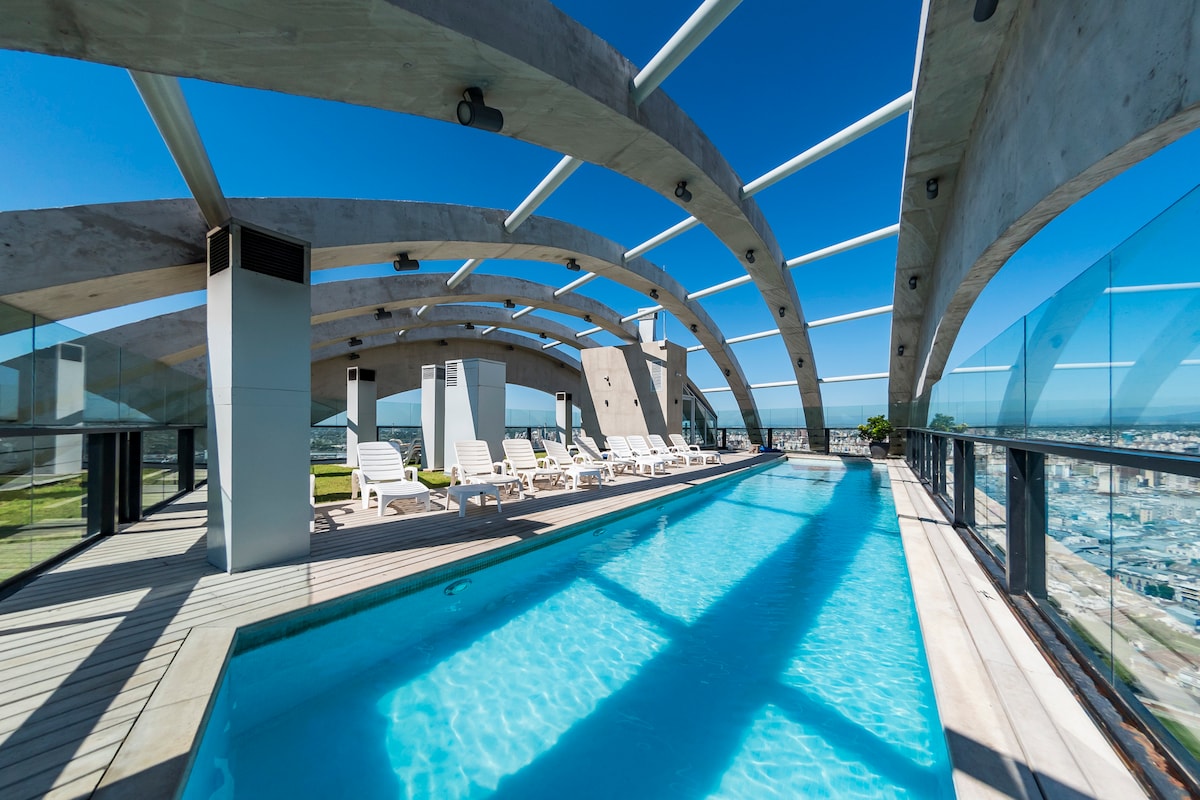 코르도바 수도의 가장 상징적인 건물에 위치한 고급 아파트로, 헤네랄 파스 지역에 있습니다. 이곳에서 책을 읽고, 친구들과 함께 놀라운 파노라마 전망을 감상하며 잊을 수 없는 순간을 즐길 수 있습니다. 일광욕을 즐기고 도시 최고의 360도 전망을 감상할 수 있는 수영장을 즐겨보세요. 건물 내 카페테리아에서 아침 식사나 간식을 선택하거나 퀸초스에서 맛있는 아사도를 준비할 수도 있습니다. 한눈에!