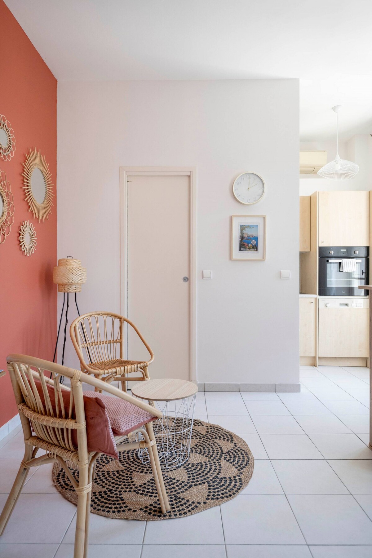 This pretty two-room apartment of 48m2, air-conditioned, attic with a view of the roofs of Old Nice is on the 4th floor WITHOUT elevator of a bicentennial building located in the heart of the Old Town. Equipped with all the comforts to make your stay pleasant: air conditioning, wifi, equipped kitchens, etc. It is a 4-minute walk from the beach and 2 minute from Place Rossetti, it is the ideal place to soak up the unique and typical atmosphere of Nice. A stay with your loved one is ideal