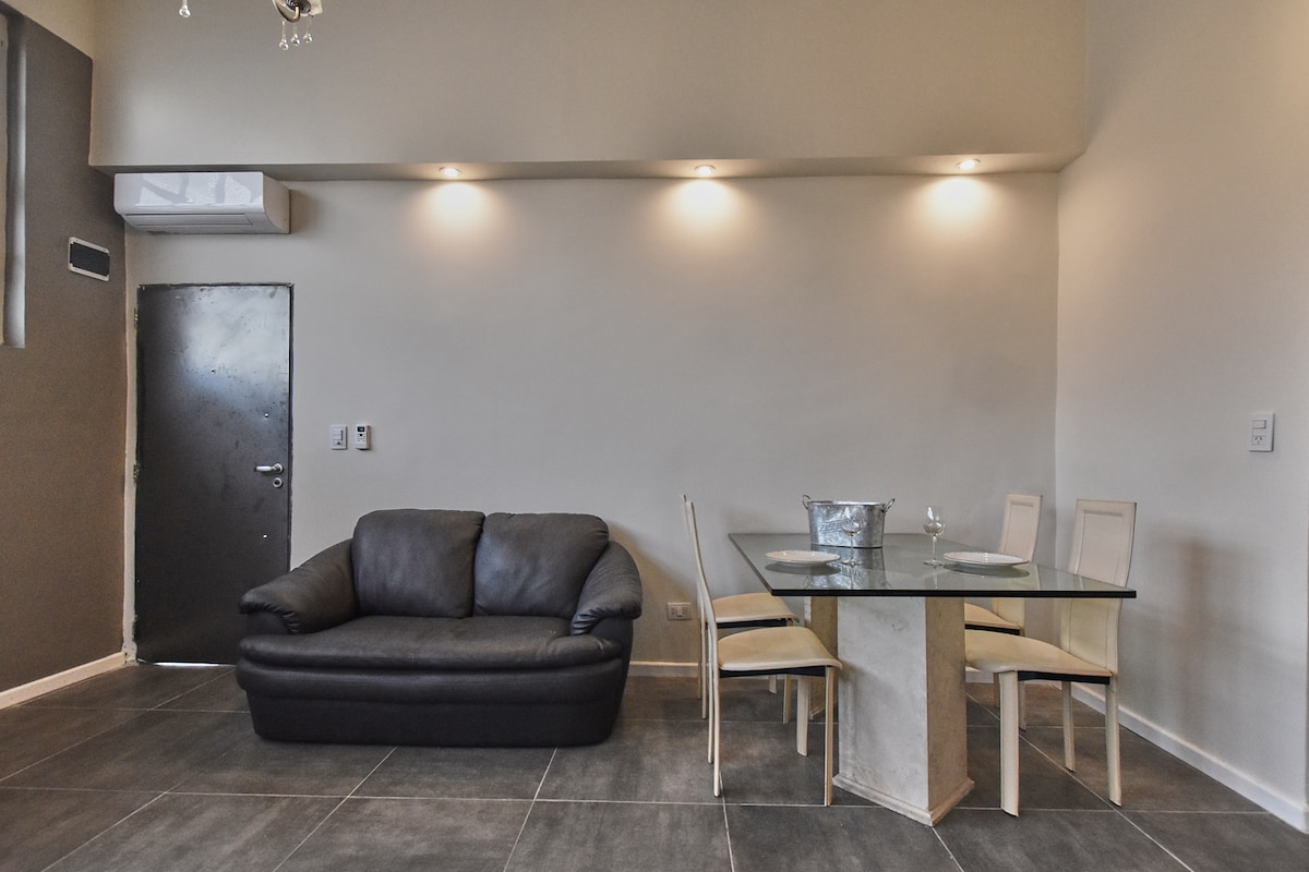 Comfortable and bright appartment, LIving and kitchen room. Work space with a Desk and a PC, swimming POOL, etc. Located in one of the most attractive areas of BUENOS AIRES CITY. Access to a different stores, museums, restaurants, and wide avenues. The apartment has a living room, double sofa bed, bathroom and balcony with a table and chairs. Access to all the most landmarks places in the city. The building has a SUM with grill. (This one has an aditional cost to use. Ask about it)