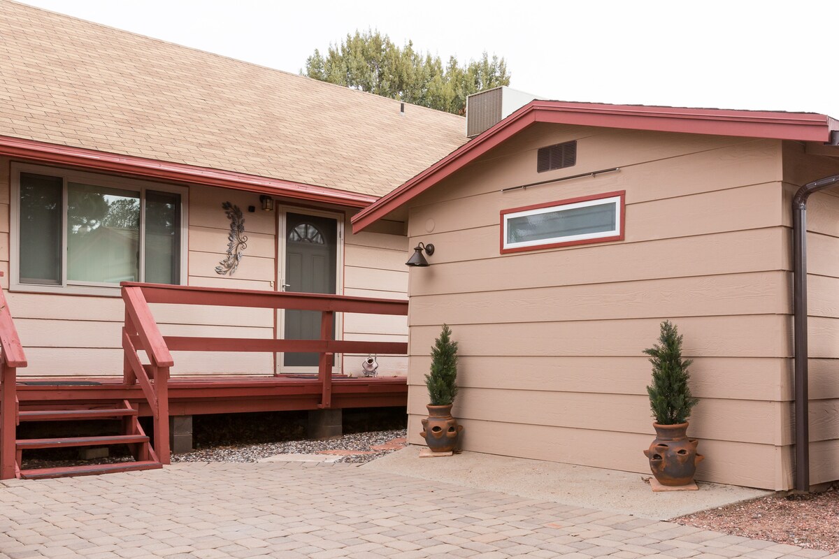 A quiet, bright, spotless studio in the CENTER of Sedona! Walk to trailheads, Sedona Shuttle, restaurants, Posse Grounds events park. King bed and Spa shower gets rave reviews. Fast Wi-Fi, smart TV, washer/dryer, kitchenette, coffee selections, Aveda products. Upgrades galore. Park your car just steps from guest patio. Easy self-check-in. Organic and fragrance-free products. Airport Mesa trail 5 min • Soldiers Pass Trail 7min • walk to Whole Foods & pickleball courts. Hummingbirds up close!