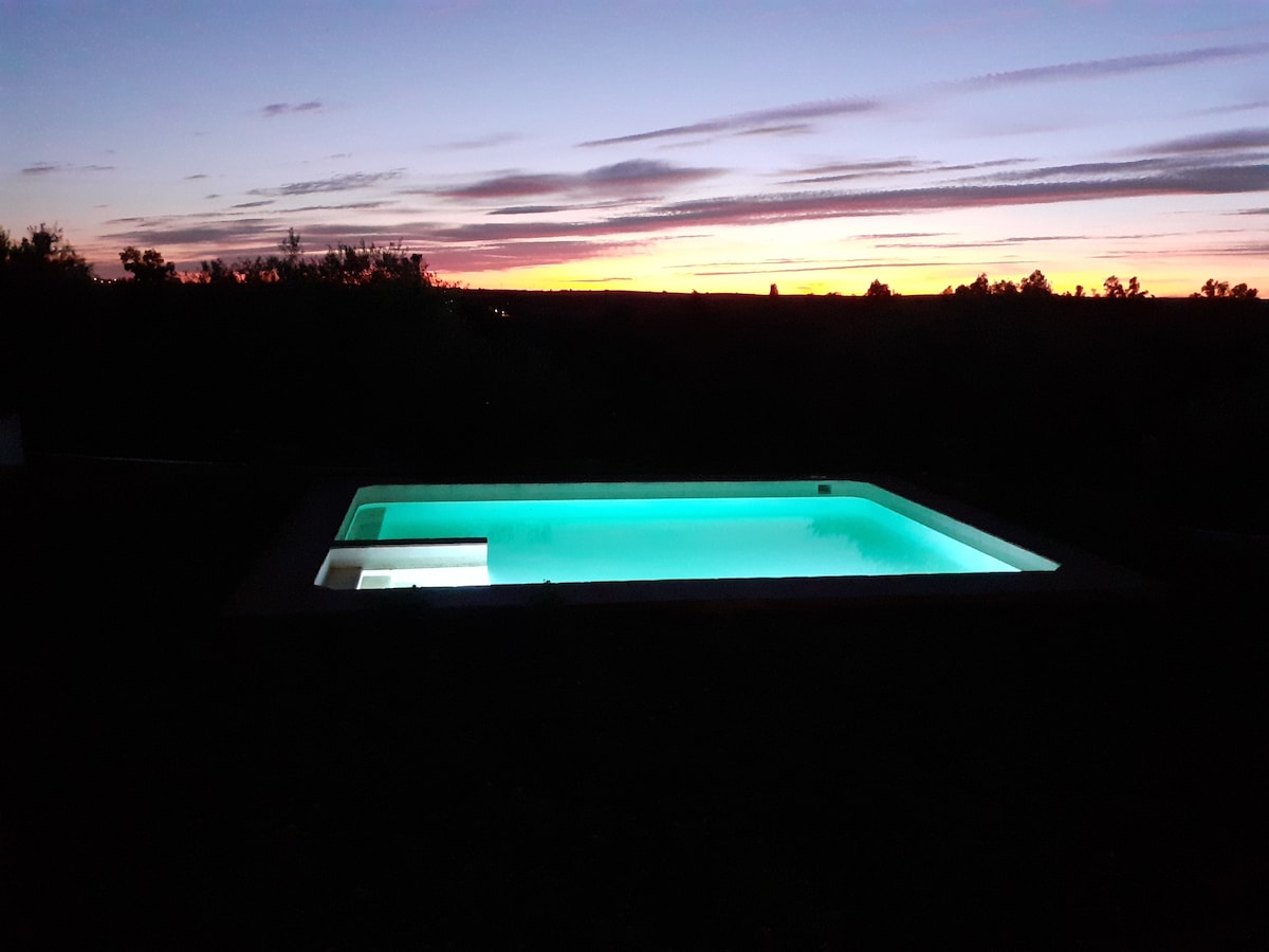 PISCINA PRIVADA. (Disponible todo el Año) Alojamiento ideal para el descanso y el ocio en compañía de familiares y amigos, la práctica de todo tipo de actividades en la naturaleza como (rutas a pié, bicicletas, etc)... Al estar ubicado próximo tanto a zona de Ribera, como de Pinar. Zona tranquila y fácil acceso. PISCINA rodeada de 200 m2 de césped.