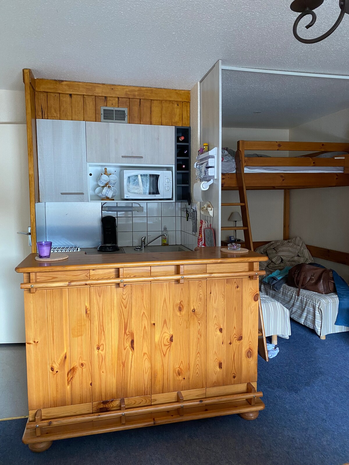 Studio tout confort, skis aux pieds.