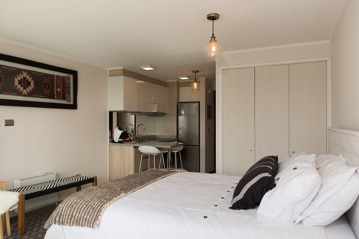 El departamento estรก hermosamente decorado y tiene un balcรณn con vista al volcรกn. 100% Equipado para 2 huรฉspedes: ๐ฝ๏ธ Cocina full equipada โ Cafetera francesa y galletas biscoff ๐ป Wifi y Smart TV ๐โโ๏ธ Piscina ๐พ Sala de juegos ๐ก Atenciรณn personalizada y recomendaciones locales Queremos ofrecerte una estadรญa โจ 5 estrellas โจ y que disfrutes al mรกximo tu estadรญa con nosotros!