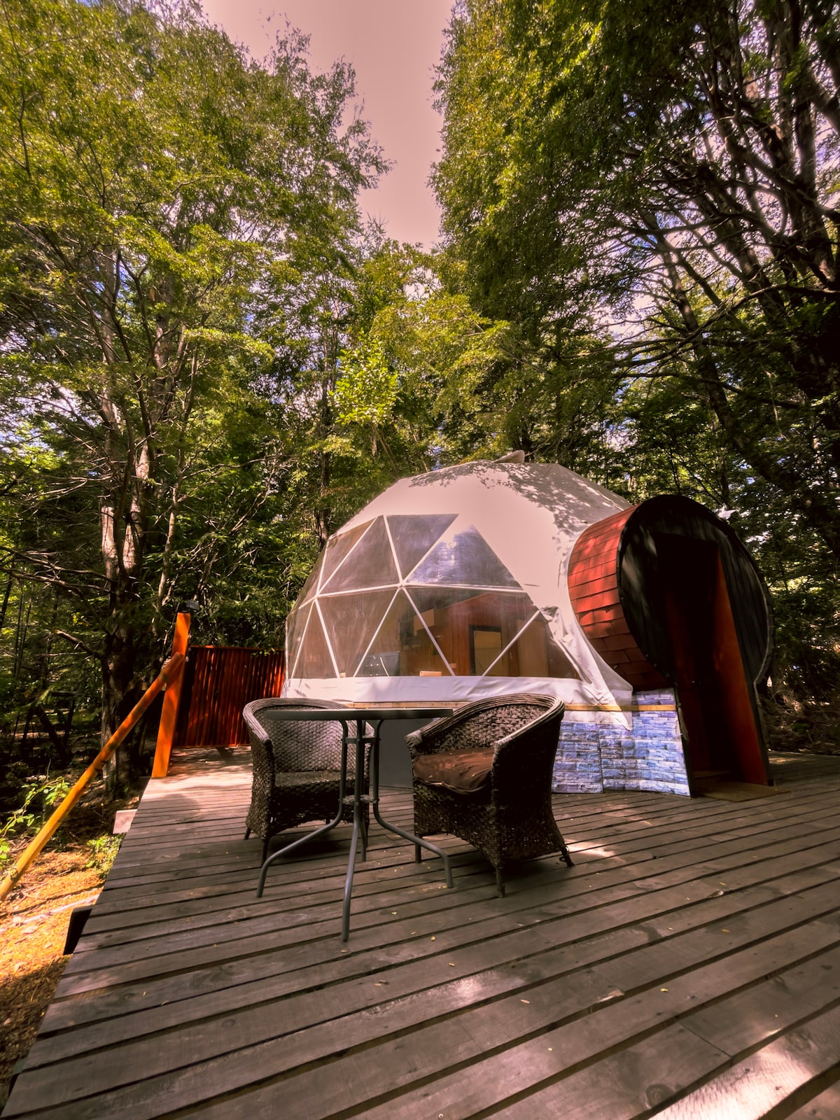Ubicado en el Km 7 de Camino al Volcรกn (sector Zanjรณn Seco) a 10 minutos en auto del mirador platรณn donde se observa el Volcรกn Villarrica y a 15 min de distancia del centro de Pucรณn en vehรญculo (REVISAR DIRECCIรN ANTES DE RESERVAR. LLEGADA EN AUTO). Cuenta con una terraza para disfrutar de la naturaleza de Pucรณn. El domo estรก equipado con una cama de dos plazas. Contamos con juegos infantiles y tinajas (cobro aparte del alojo)