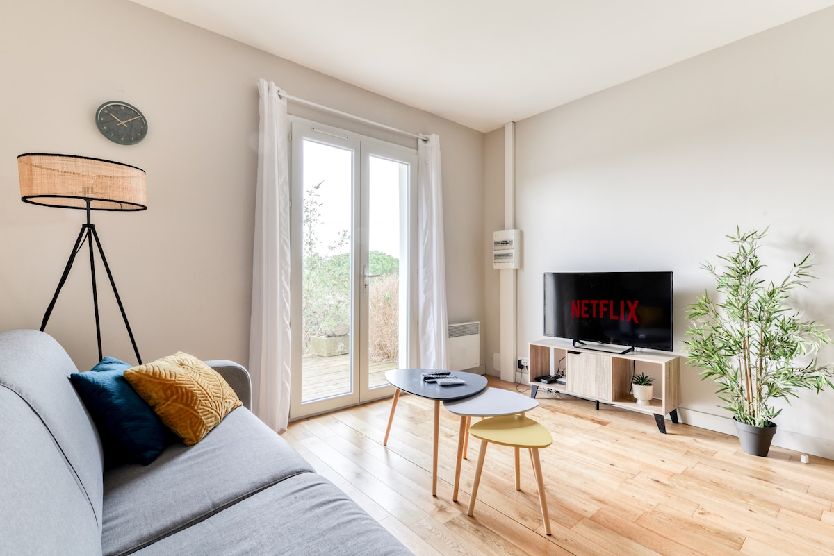 베르제유의 "카타르 국가 한가운데"에 위치한 마틸드와 아르노의 집에 오신 것을 환영합니다! 중세 도시 카르카손과 리무에서 불과 15분 거리에 있는 올리브 나무와 포도나무로 둘러싸인 주택가에서 일년 내내 여러분을 맞이합니다. 이 42㎡의 코쿤은 편안함과 고요함이 결합되어 커플 또는 출장 숙박에 이상적입니다. 문화, 맛, 풍경이 풍부한 진정한 지역에서 휴식, 자연, 발견이 여러분을 기다리고 있습니다.