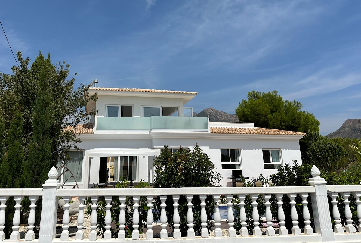 이 숙소는 코스타 블랑카, 시에라 데 알테아의 최고의 지역 중 하나에 위치해 있으며, 멋진 바다 전망, 10x5m 크기의 전용 수영장, 대형 지중해 정원, 초고속 인터넷을 갖추고 있습니다. 그림처럼 아름다운 알테아는 자전거, 산악 자전거, 하이킹에 이상적인 베르니아 산맥과 가깝습니다. 아름다운 해안, 산속의 정통 시골 마을, 아름다운 자연을 발견할 수 있는 이상적인 장소입니다. 커플이 휴식을 취하고 즐기기에 이상적입니다.