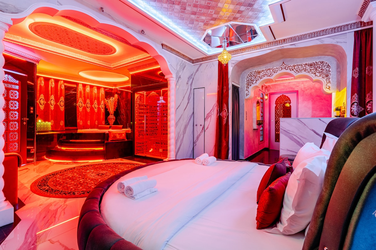 미 러브 룸, 미 시크릿 룸 등 쉐헤라자드의 고급스러운 스위트룸에서 여러분이 원하시는 것을 제공해 드립니다! 신비로운 동양의 낭만, 천년의 페르시아 역사, 야만적인 폭력에 대항하는 여성의 상징적인 신화, 장난기 넘치는 안식처, 또는 21세기의 기술적 고급스러움. 시간과 세상을 벗어난 이곳은 최고의 추억을 만들어 줄 맞춤형 친밀한 공간입니다. 조명, 사운드, 온도는 고객의 선택에 따라 독특한 그림을 그립니다...