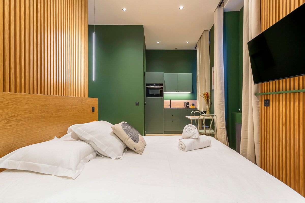 크루아루스의 중심에서 세련미와 프라이버시를 즐기세요. 이 우아한 스위트는 더블 스파 욕조와 전용 사우나를 갖추고 있어 2인에게 최고의 숙박 경험을 제공합니다. 고급 침구, 차분한 분위기, 고급스러운 편의시설. 리옹의 진정한 매력을 웰니스와 절대적인 편안함 속에서 즐겨보세요. 동네 최고의 명소에서 아주 가까운 거리에 있습니다.