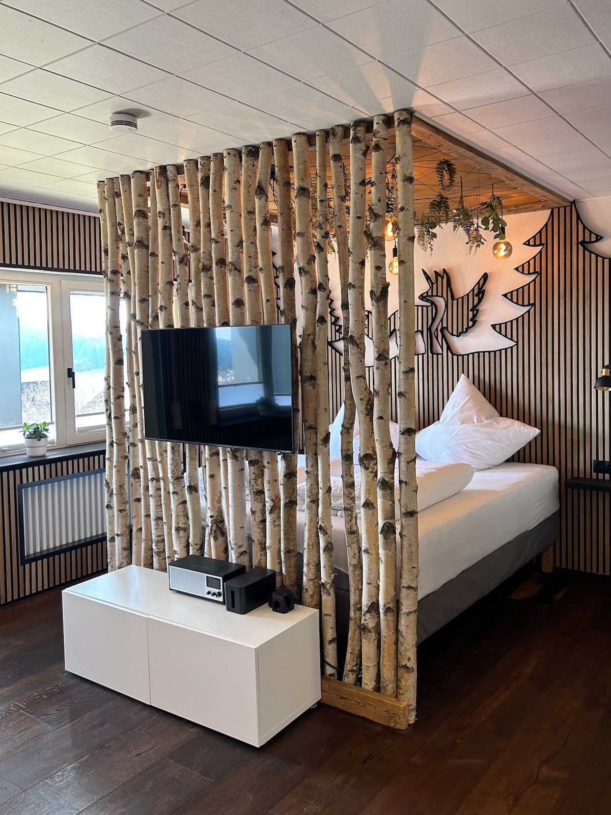 Auf 1000 Meter Höhe begrüßen wir dich mit einer atemberaubenden Sicht auf Schonach und den Schwarzwald. Entspanne in einem 2023 komplett renovierten Apartment mit topmoderner Ausstattung und viel Liebe zum Detail. Ob echter Baum im Wohnzimmer, Blumendecke über dem Bett, Fachwerkwände, Regendusche im Wald oder echtes Steinwaschbecken: Durch viele, hochwertige Details kommen Designliebhaber nicht zu kurz. Direkt am Waldrand gelegen ist der Fabelwald perfekt für Naturliebhaber.