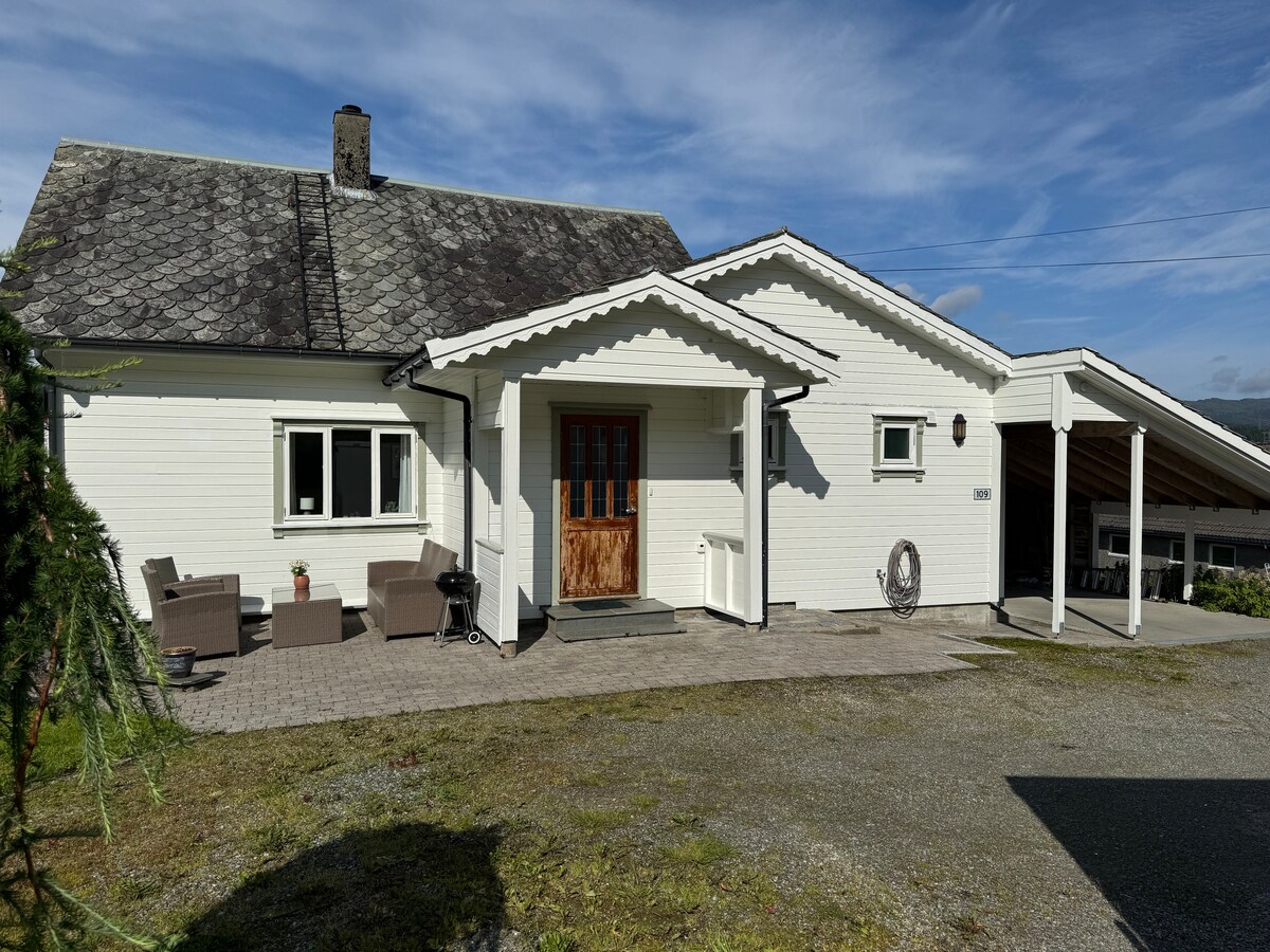 Hus til leige på gard, nær turløyper og fjord