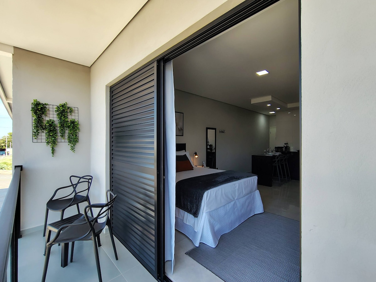발코니와 차고가 있는 넓고 현대적인 스튜디오.