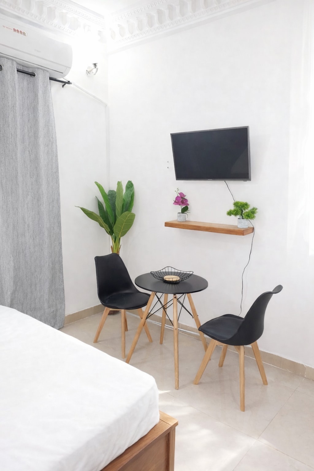 매력적으로 꾸며진 이 아파트는 쾌활한 색상의 넓은 객실을 자랑합니다. 각 침실에는 전용 욕실과 에어컨이 갖춰져 있습니다. 멋진 전망을 자랑하는 웅장한 옥상 테라스는 모든 고객이 이용할 수 있습니다. 빠른 와이파이와 수많은 해외 채널이 나오는 IP TV를 즐겨보세요. 저희는 청결에 매우 중점을 둡니다. 이 아파트는 해변과 슈퍼마켓에서 도보로 가까운 거리에 있는 응오르 알마디스의 조용하고 안전한 "비라지" 동네에 있습니다.