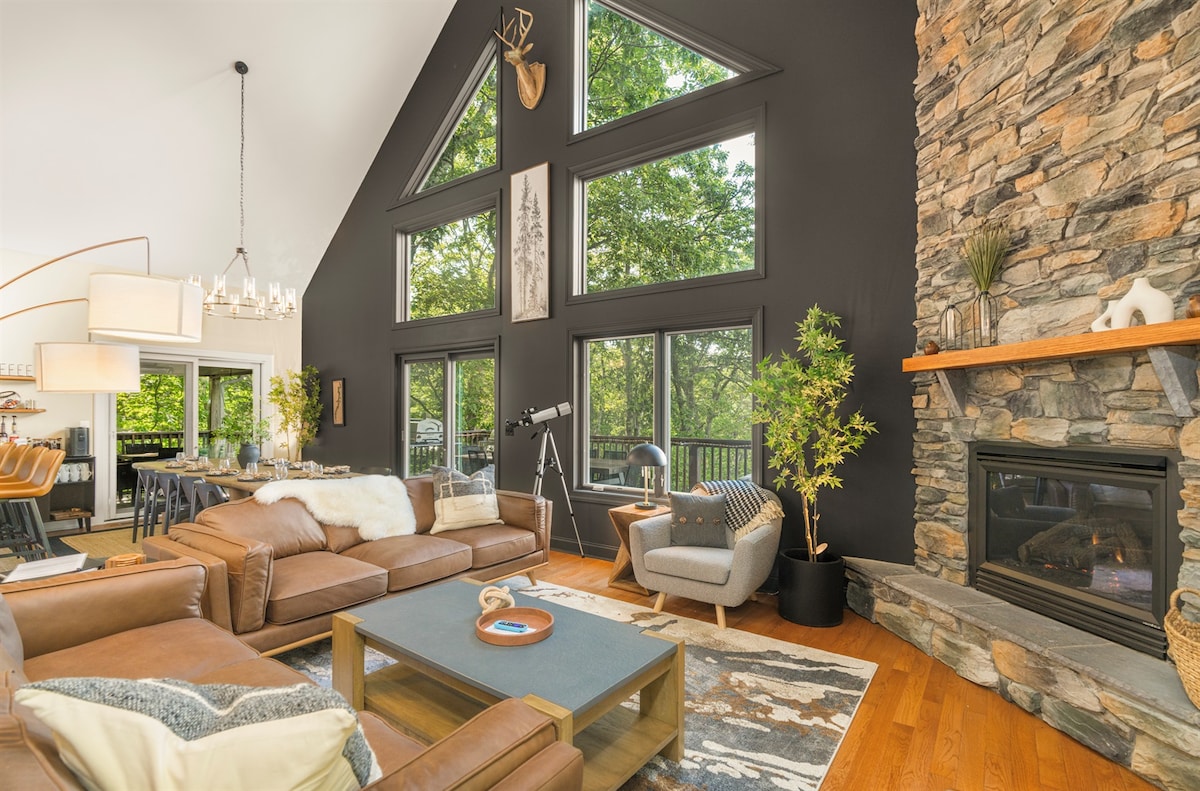 셰난도아 산에 자리잡고 있으며, 반짝이는 연못 위에 자리잡고 있습니다. 손으로 조각한 두 개의 문을 통해 넓은 침실 5개, 욕실 5개로 게스트를 따뜻하게 맞이할 수 있습니다. 성당 천장이 있는✓ 대화 구덩이와 떠다니는 벽난로 ✓ 완비된 주방, 구비된 물품 및 준비물 각 ✓ 침실에 딸린 욕실 편안한 침대✓ 6개 게임룸 ✓ 3개 (에어 하키, 다트, 푸스볼, 수영장) 커버된 데크✓ 6개 로쿠와 함께✓ 50인치 TV ✓ 풀사이즈 세탁기/건조기 재택 근무를 위한✓ 초고속 인터넷