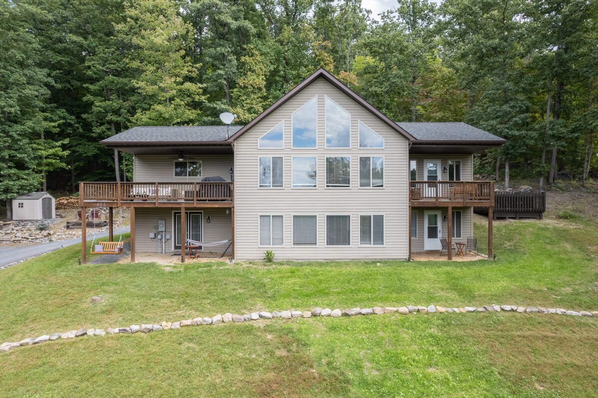 Whitetail Summit is a spacious chalet with stunning mountain views, river access, and hiking on property. You'll have close proximity to 30+ wineries/breweries, the Shenandoah National Park, the Appalachian Trail, the Shenandoah River, horseback riding, and hunting preserves. Or relax at home, with an indoor pool/ping pong table, music nook, outdoor hot tub, and fire pit. We are family/pet-friendly. REMOTE WORK: 600MBps wifi, two dedicated work-from-home spaces, and a GYM/PELOTON