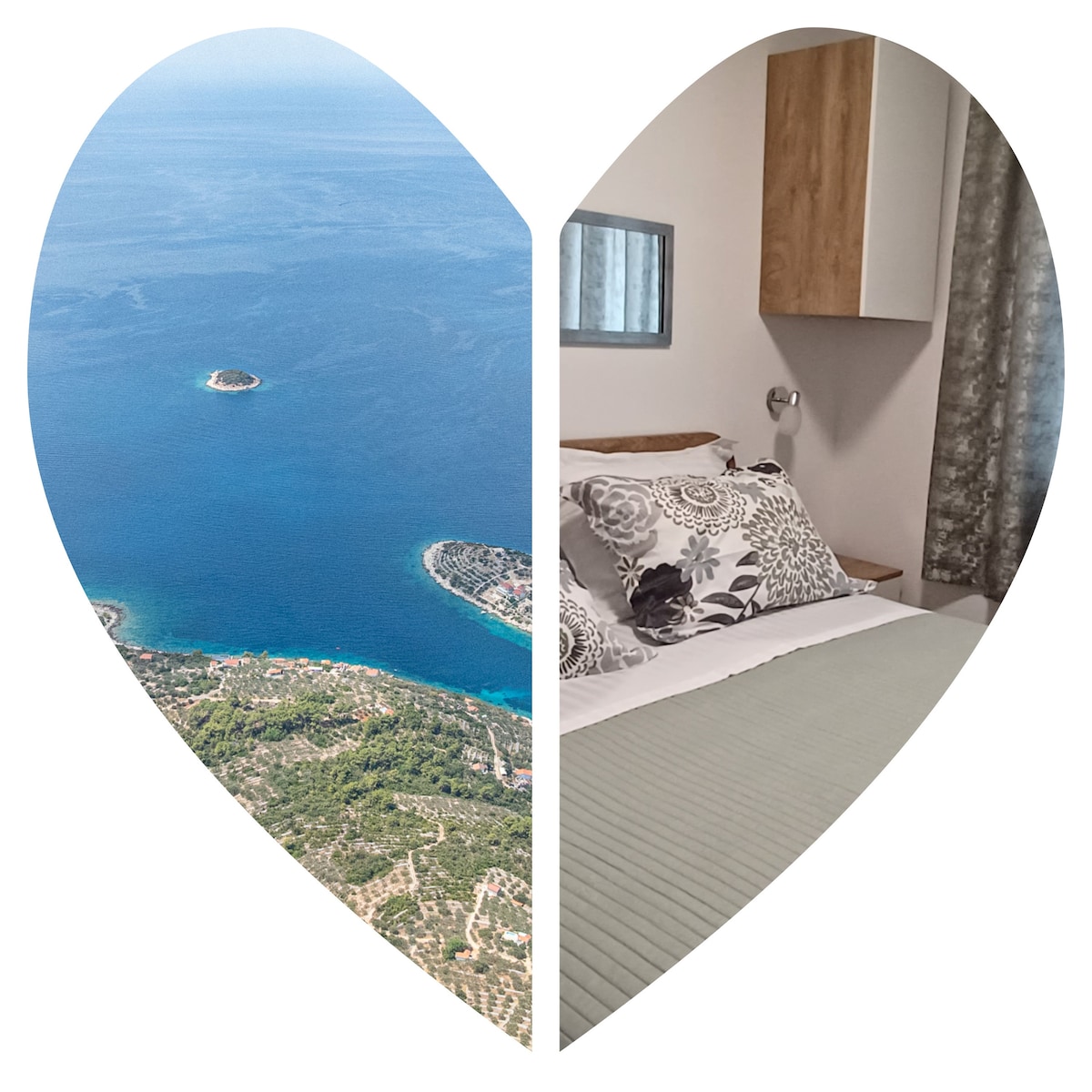 The house with the studio apartment is located near the local marina „Bilo Idro“ and on a cliff above the sea. From the outside area of the apartment is a stunning view to the west of the island of Hvar (towards the town of Hvar), to the Red Rocks and the Adriatic sea. The house is surrounded by old pine trees that provide natural shade and refreshment in the hot summer days. The studio apartment has its own entrance and parking, and a separate outside space.