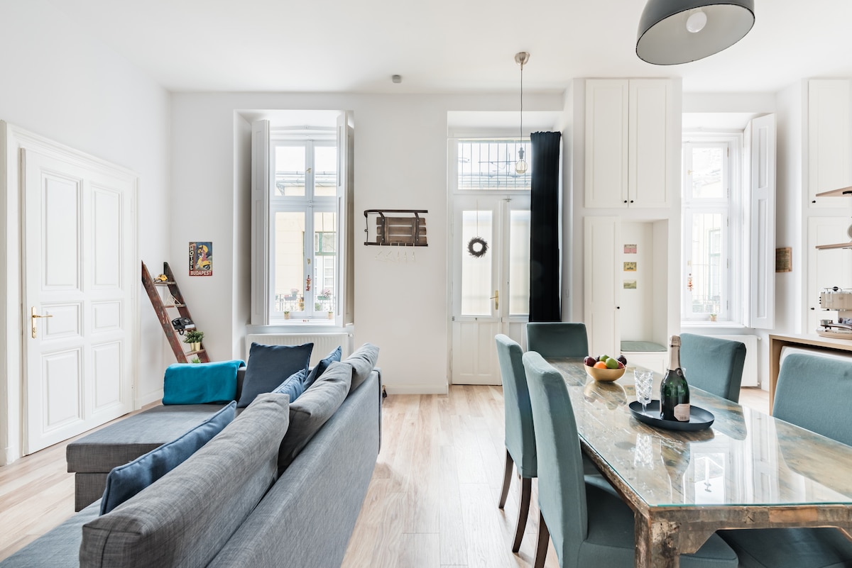 유럽에서 가장 상징적인 풍경 중 하나인 헝가리 국회의사당이 창밖으로 보이는 숙소에서 아침을 맞이해보세요. 부다페스트 한복판에 위치한 100평방미터의 디자인 아파트로 우아함과 편안함을 동시에 제공합니다. 카페, 박물관, 다뉴브 강과 모든 대중교통이 몇 걸음 거리에 있습니다. 잊을 수 없는 전망을 자랑하는 평화로운 휴양지를 찾는 커플, 가족, 원격 근무자에게 이상적입니다.