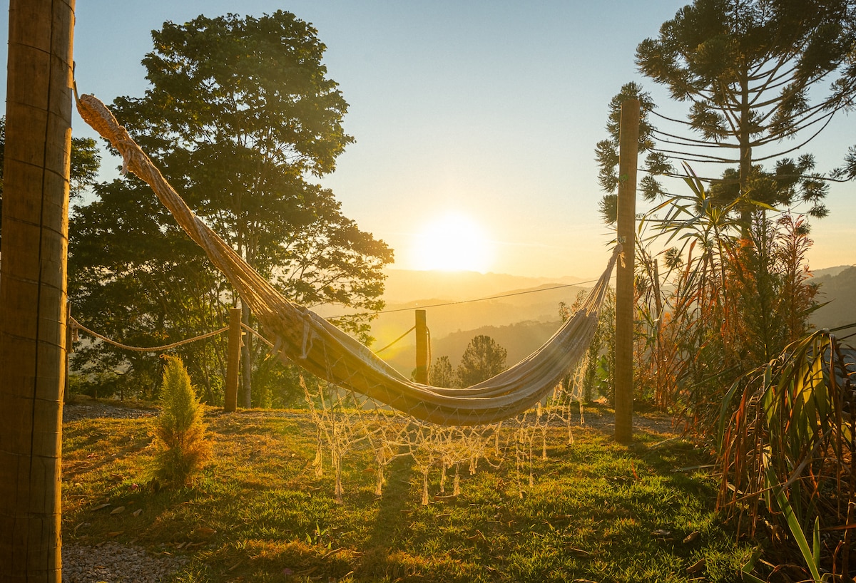 이 독특한 장소는 캄포스 두 조르단의 산 가운데에 위치하고 있으며 숨 막히는 전망을 자랑합니다! 편안함과 세련미를 잃지 않으면서도 소박한 스타일은 이 장소의 풍부한 자연과 더욱 연결되게 합니다. 산과 아름다운 일몰을 마주하고 있습니다. 저희 위치는 특권적입니다. 우리는 카피바리 중심지에서 불과 11분 거리에 있는 조용한 거리의 고급 지역의 주택가에 있습니다!