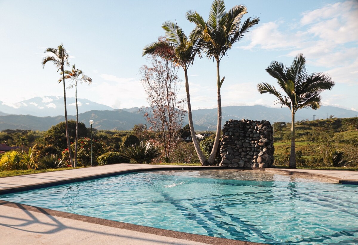 편안한 숙소를 즐기세요. 방금 리모델링을 마친 매우 깨끗하고 아늑한 빌라입니다. 산과 사탕수수 농장의 멋진 전망. 연중 훌륭한 날씨: 평균 75도. 수영장과 자쿠지를 통해 휴식을 취하고 햇살 좋은 날을 즐길 수 있습니다. 가제보 옆에 있는 수영장 스툴에 앉아 가족 및 손님과 함께 음료와 음식을 즐길 수도 있습니다. 작은 마을(라 버지니아 및 비테르보)에서 10분 거리에 있습니다. 페레이라와 메데인으로 가는 주요 도로로 쉽게 이동할 수 있습니다. 근처에 병원과 경찰서가 있습니다.