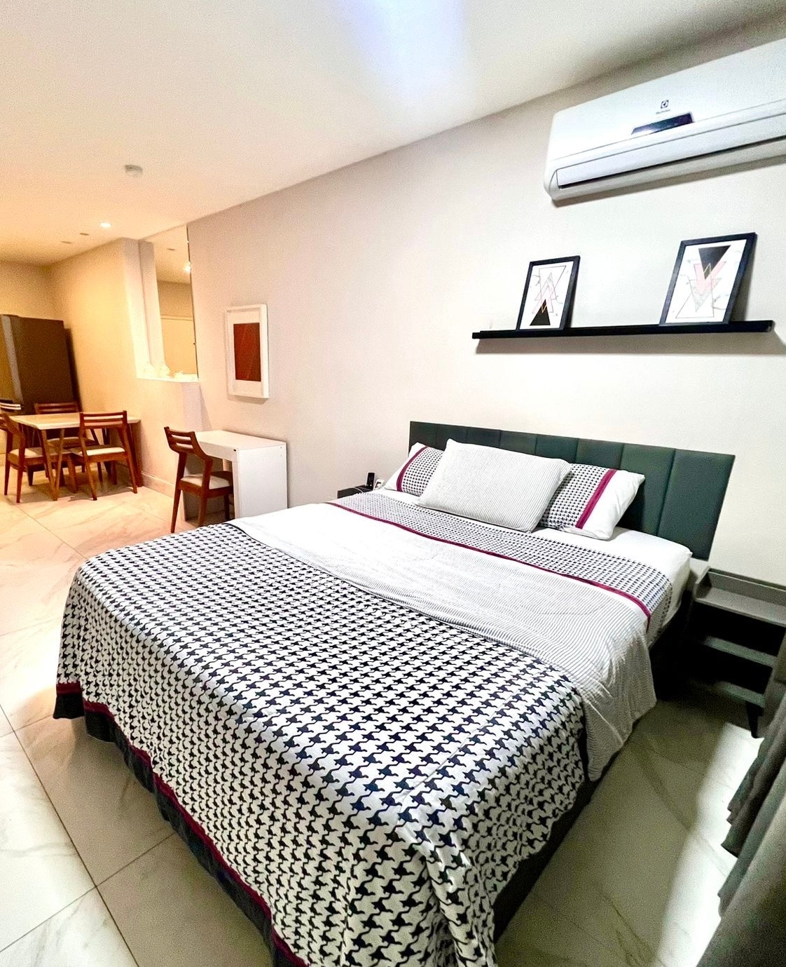 바다의 특권 전망을 갖춘 완벽한 숙박을 제공하기 위해 세부 사항에 주의를 기울여 설계된 놀라운 플랫을 소개합니다. 모든 것이 편안함과 실용성을 보장하기 위해 고안되었습니다. • 중장기 숙박에 이상적인 완벽하고 잘 갖춰진 인프라. • 항상 연결 상태를 유지할 수 있는 초고속 와이파이(500 Mbps). • 1층에 다양한 편의 시설이 있는 전략적 위치: 미니 마켓, 베이커리 및 약국.