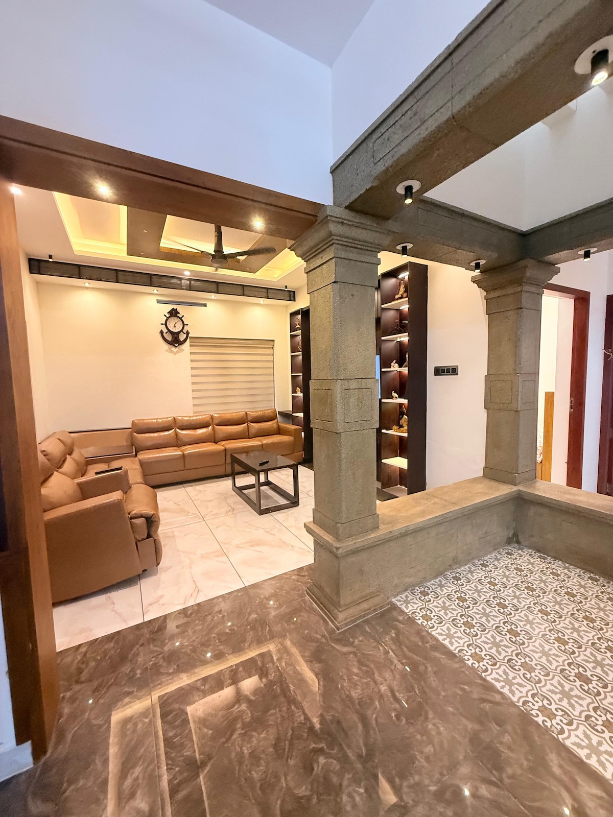 문 빌라는 집에서 멀리 떨어진 완벽한 숙소입니다. 왕실의 대접을 받으세요. 저희 문 빌라는 스리 파드마나브하 스와미 사원 트리반드룸 근처에 위치한 아름다운 프리미엄 평방 피트 완비된 3Bhk 빌라입니다. NH 66 접근 근처에서 불과 1km 거리에 위치한 관광지입니다. 로열 트리반드룸의 중심부에 있습니다. 가구가 완비된 빌라는 트리반드룸의 어느 곳에서도 얻을 수 없는 편안함을 제공하는 고급스러움의 대명사입니다. 평화롭고 넓습니다.