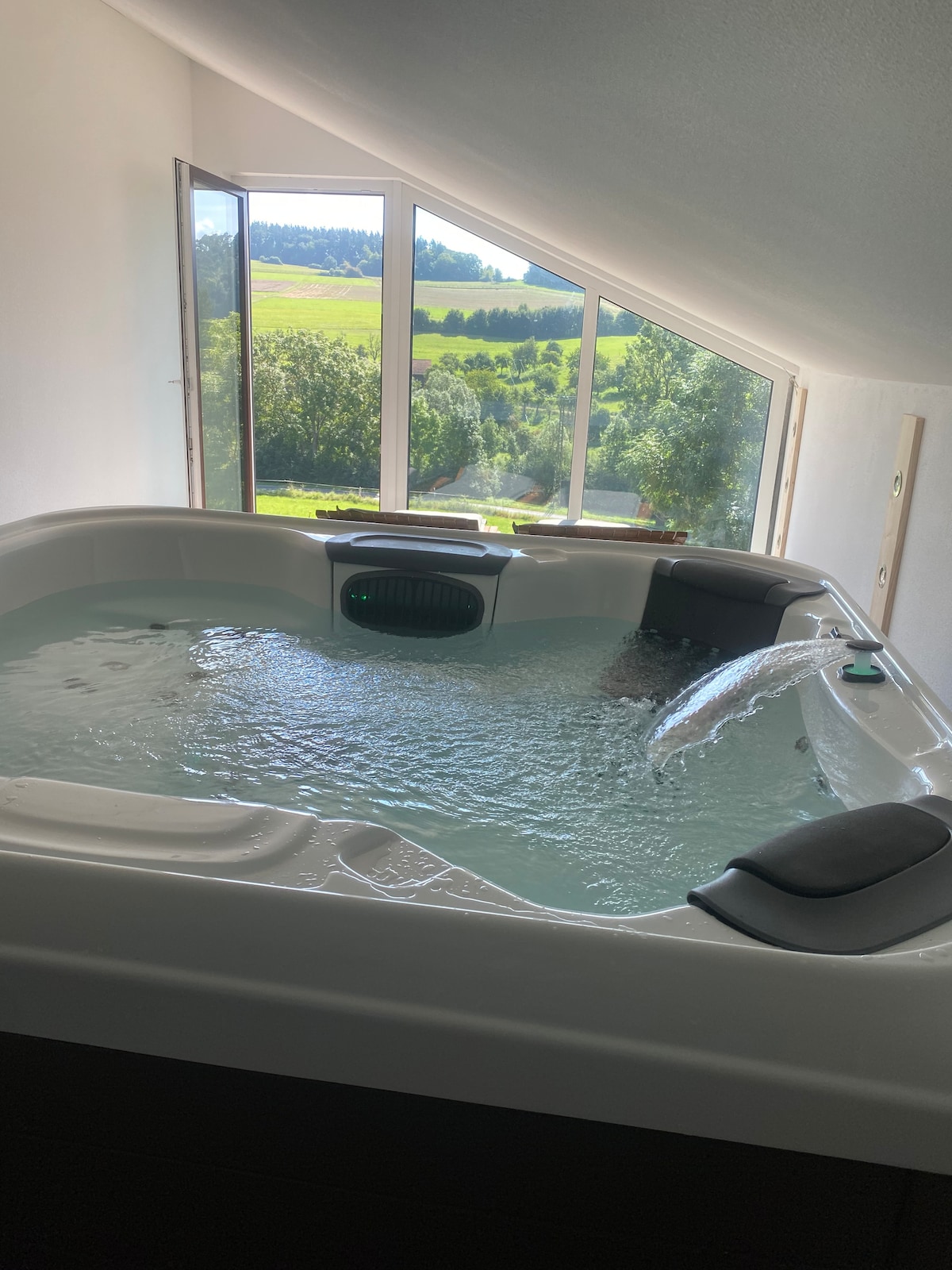 Unsere charmante Ferienwohnung erstreckt sich über 65m2 und bietet alles, was Sie für einen erholsamen & unvergesslichen Urlaub benötigen. Mit zwei geräumigen Schlafzimmern, einem modernen Bad & einer voll ausgestatteten Küche, ist für höchsten Komfort gesorgt. Kostenloses WLAN, Blick ins Grüne und eine Klimaanlage bieten höchsten Wohlfühlfaktor. Der 40 m2 Wellnessbereich im OG der umgebauten Scheune mit Sauna, Dusche, Whirlpool und Ruhebereich können vor Ort hinzugebucht werden.