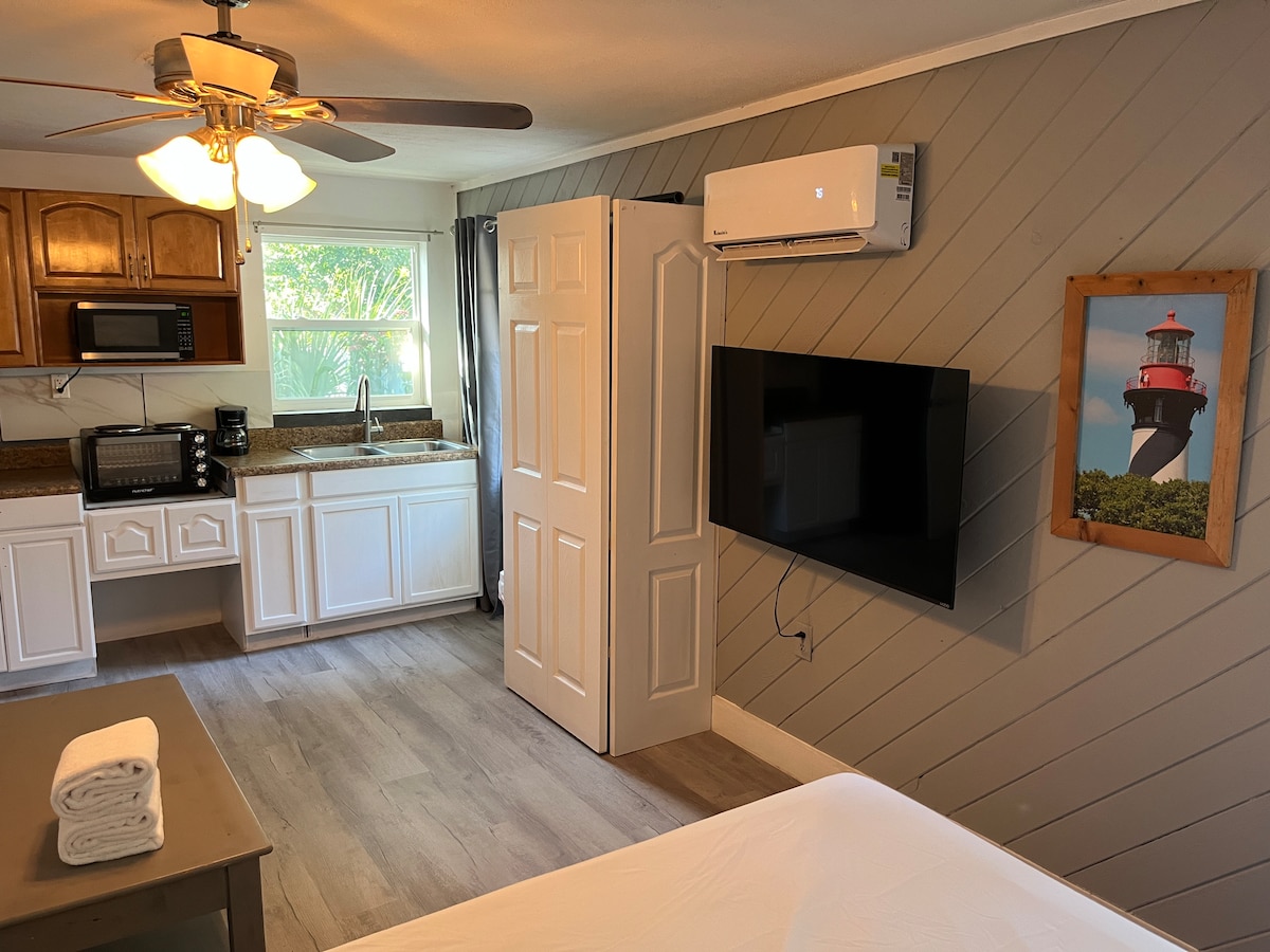 Welcome to 1915 Beach Club! Your modern boutique Daytona getaway just steps from the ocean. Relax in style with two comfy Queen beds OR Cozy King bed, dining area, seating area, great closets, Comfy suites with kitchenettes, BBQ area, ping pong, and cozy outdoor lounges. Free parking for cars, trailers & boats. Only a 5-min walk to the beach and 15-min stroll to shops & restaurants. The perfect spot to relax, play & soak up the Daytona vibes! ☀️🏖️ Pets Welcome for a Fee, Ask us Details