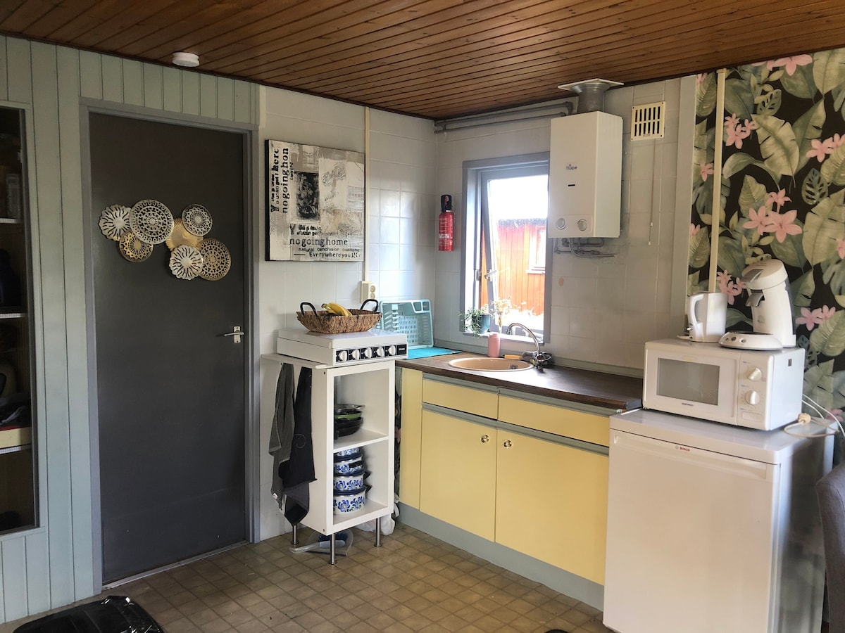 아름다운 북해 해변에서 600미터도 안 되는 부어네-푸텐 섬에 위치한 숲 가장자리에 위치한 사랑스러운 작은 전원주택은 아늑한 휴양 공원에 위치해 있습니다. 최근 분위기와 편안함이 부족하지 않도록 완전히 새롭게 단장했습니다. 전원주택에는 커다란 베란다가 있어 너무 더우면 그늘에 앉을 수 있습니다. 모래 언덕을 지나 로칸제의 아름답고 아늑한 해변으로 가는 자전거 도로를 쉽게 걸을 수 있습니다.