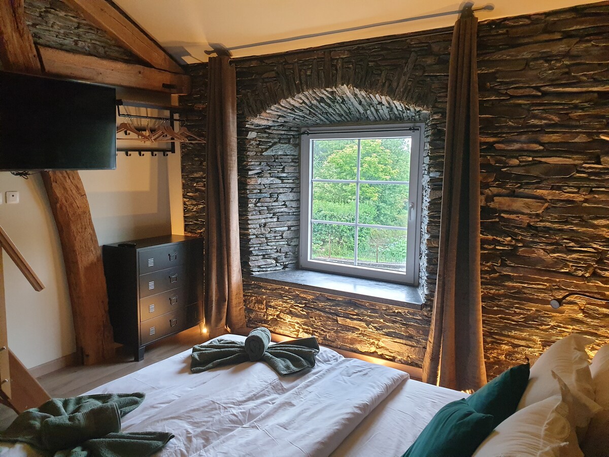 완전히 개조된 헛간의 1층에 위치한 밝고 아늑한 멋진 현대식 스튜디오. 조용한 아르덴 중심지에 위치하고 있으며, 식료품점에서 100m, 쇼핑 센터에서 200m 거리에 있습니다. 커플에게 이상적입니다. 주방 시설, 이탈리안 샤워기와 화장실이 있는 별도의 욕실. 2인용 테이블이 있는 25m2의 넓은 테라스와 정원 가구(여름). 다른 스튜디오와 공동 세탁기. 같은 방에 더블 침대 1개 160 + 소파 베드 1개(성인 1명 또는 어린이 2명).