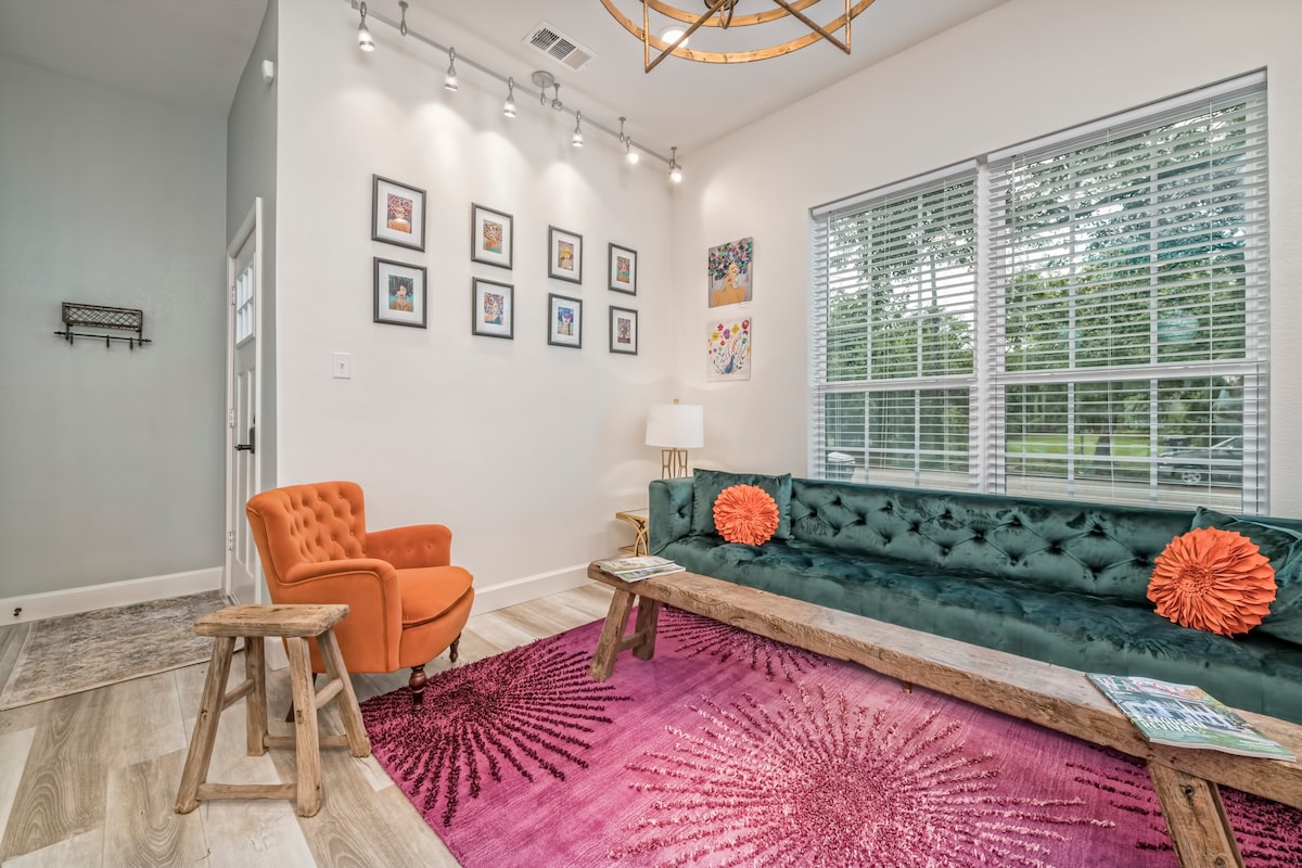 4개의 욕실을 갖춘 아트 하우스는 실망하지 않을 것입니다. 사일로 지구에 위치하고 있으며, 마그놀리아/사일로에서 두 블록 위쪽으로, 한 블록 위쪽으로 위치하고 있어 레스토랑과 쇼핑 장소까지 도보로 갈 수 있는 거리 내에 있습니다. 베일러와 맥레인 스타디움이 도보 거리 내에 있거나 차로 가까운 거리에 있습니다. 아트 하우스는 또한 밝고 밝으며 숙소 전체에 예술 작품으로 장식되어 있습니다. 웨이코 아트 센터 바로 뒤에 위치하고 있습니다.