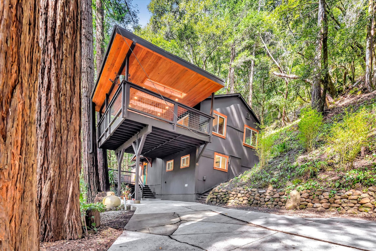 This unique A-Frame cabin, in a quiet mountain neighborhood with private creek access, was handbuilt in 1965 and remodeled in the summer of 2024. Now a little slice of heaven on the creek in the redwoods. *5-10 min to Henry Cowell Redwoods State Park, Roaring Camp Railroad, Loch Lomond Recreation Area, the Trout Farm Inn, Quail Hollow Ranch + Felton stores. *20 min to Santa Cruz, beach + Boardwalk. *1 min to Zayante Creek Market (EV charger) Find us on social: Insta @SantaCruzAFrame