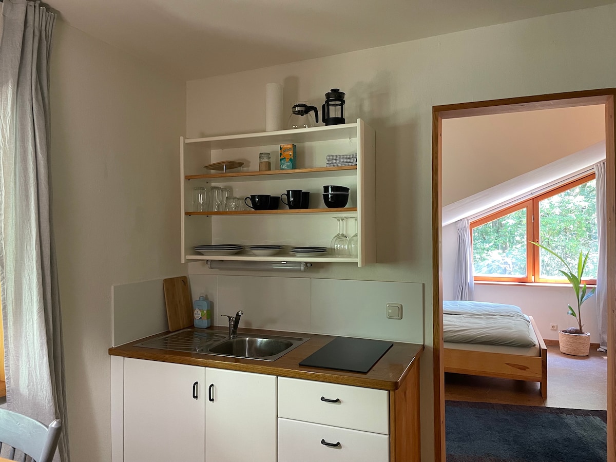 여러분의 집: 외부 계단을 통해 전용 출입이 가능한 1층의 아늑한 작은 아파트. 나무 꼭대기 사이에 있는 작은 베란다가 있는 독창적인 진흙 집에 세련되게 꾸며져 있습니다. 자연 속에서 조용한 휴식 장소로 탁월합니다. 도보로 단 10분 거리에 있는 그로스 비트파이첸의 자연 수영장에서 시원한 물놀이를 즐기실 수 있습니다. 더운 날에 시원하게 쉴 수 있는 이상적인 장소입니다! 드라베른 자연 공원 한가운데에 위치한 이곳은 자전거 타기와 하이킹을 즐기기에 좋은 곳입니다.