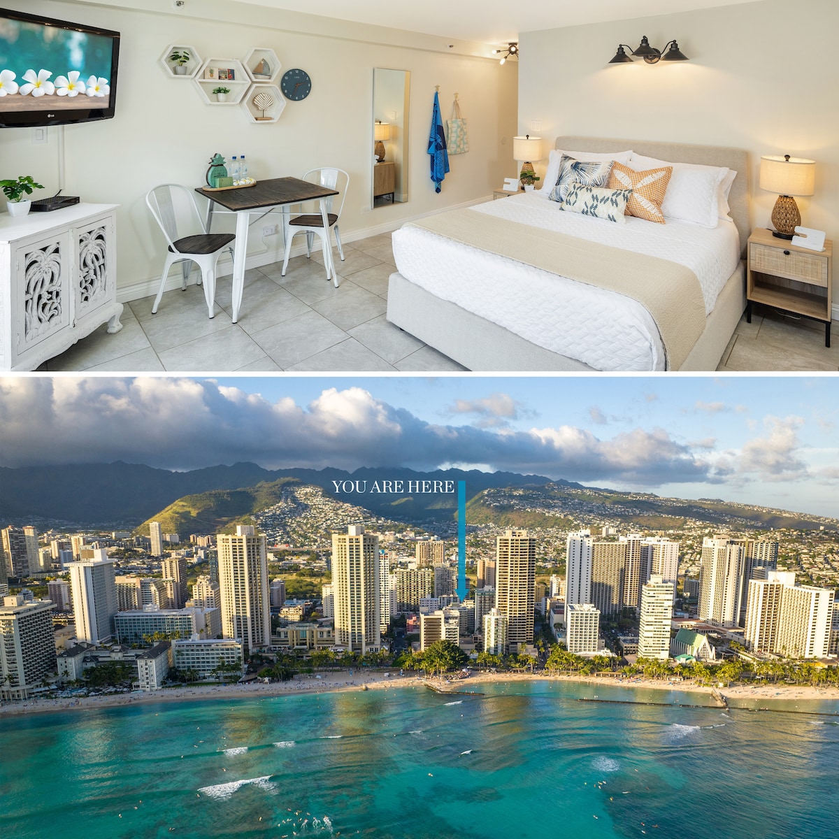 와이키키 중심부에 위치한 작은 스튜디오로 해변 옆에 있습니다.