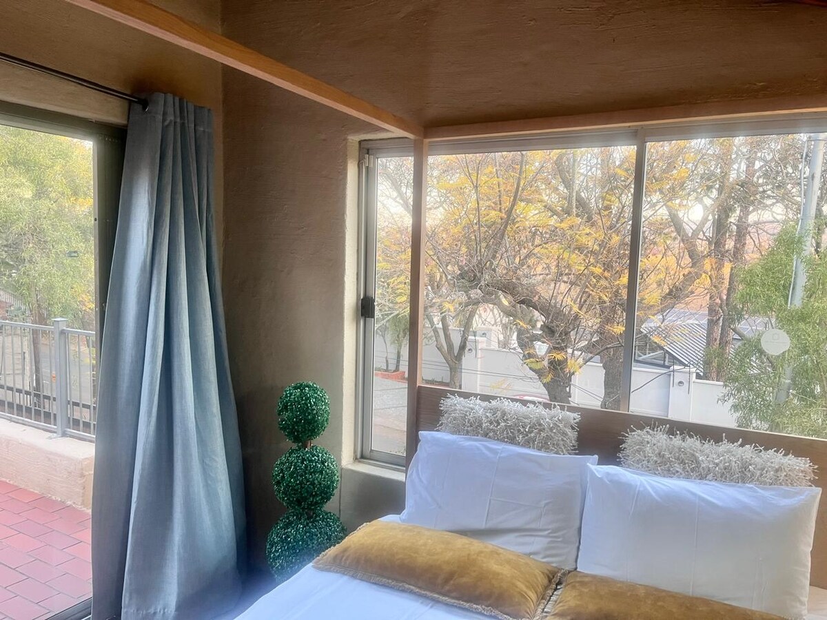 나무로 만든 온수 욕조, 아늑한 브라아이 공간, 평화로운 매력을 자랑하는 전용 정원 전원주택으로 떠나보세요. 커플이나 나홀로 여행객에게 완벽한 숙소입니다. 편안한 퀸사이즈 침대, 완비된 주방, 빠른 와이파이, 안전한 주차장을 즐기세요. 별빛 아래에서 휴식을 취하거나, 욕조에 몸을 담그거나, 브라아이(남아공식 바비큐)를 즐겨보세요. 프리토리아 중심부의 낭만적인 은신처.