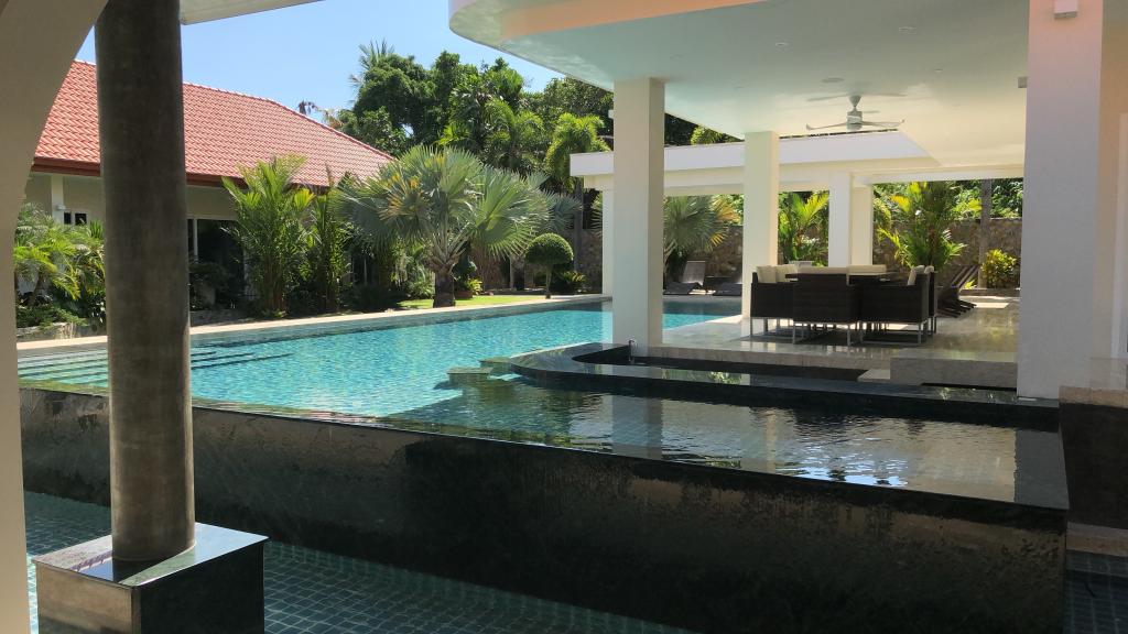 Close to the center of Pattaya, 6 bedroom villa with private pool, minutes from the Beach / City and Walking Street. The villa is tastefully decorated and has a large L-shaped living room; with modern furniture and a spacious kitchen, equipped with a big refrigerator, ice machine, freezer, cooker, rice cooker, toaster, coffee maker, microwave, oven and washing machine. The house is fully air-conditioned and has FREE High speed WIFI and Netflix.