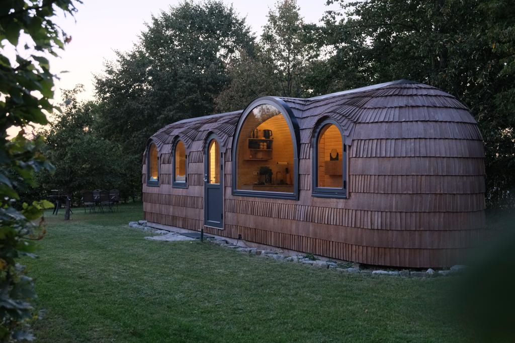 목가적인 이글루에서 영감을 받은 타이니 하우스는 22 ㎡ 면적의 자연과 가까운 휴양 파라다이스를 제공합니다. 가문비나무 지붕널의 외부 클래딩이 내부의 밝은 색상의 아스펜 나무에 매끄럽게 어우러지며, 이곳에서 자연과 완벽한 조화를 느낄 수 있습니다. 커다란 파노라마 창문을 통해 집 안으로 따뜻한 빛이 들어와 주변의 조화로운 분위기를 전달합니다. 더 시원한 온도에서도 바닥 난방은 아늑한 따뜻함을 선사합니다.
