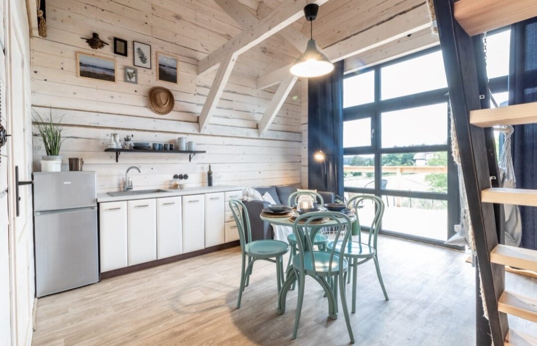 Oferujemy całoroczny drewniany domek gościnny, położony na terenie Parku Krajobrazowego Wysoczyzny Elbląskiej. Spędziliśmy w nim dużo czasu, ciesząc się spokojem i magią lasu. Stworzyliśmy go z myślą o komfortowym przebywaniu w nim 2 osób. Do dyspozycji oddajemy sypialnię, salon z kuchnią oraz zadaszony taras. Jest to raj dla introwertyków lub idealne miejsce do pracy zdalnej na łonie natury. Niech to miejsce w lesie stanie się Twoim prywatnym azylem, miejscem, gdzie czas zwalnia…