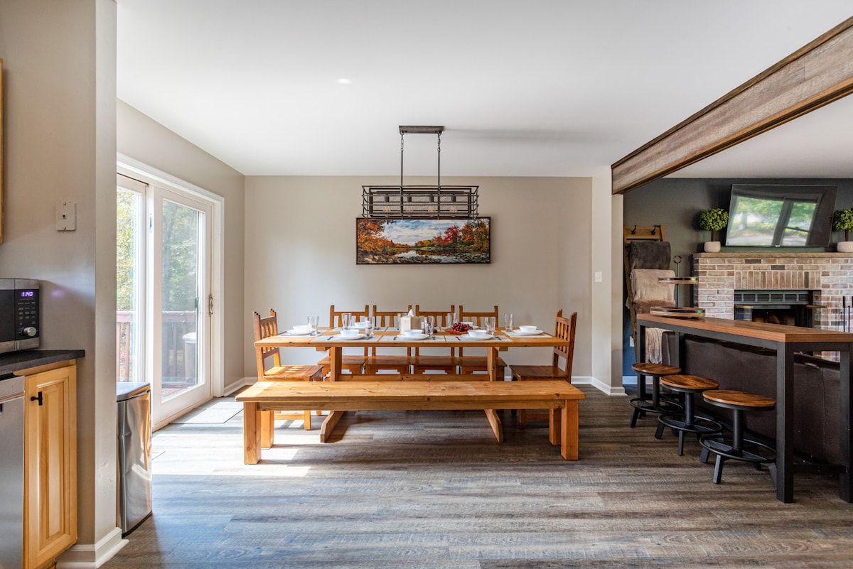 최근에 리모델링한 공간이 있어 내 집처럼 편안하게 느껴지는 고급스러운 2BR 2Bath 숙소의 편안함을 느껴보세요. 고요한 주택가에 위치한 이 숙소는 포코노스 최고의 스키, 레스토랑, 상점, 하이킹, 편의 시설과 가까운 산악 휴양지를 약속합니다. 데크에서 스키 슬로프와 산 전망을 즐기세요. 현대적인 디자인과 풍부한 편의시설이 모든 요구를 충족시켜 드립니다. 편안한 침실✔ 2개 ✔ 주방 시설 완비 ✔ 자쿠지 욕조 ✔ 스마트 TV