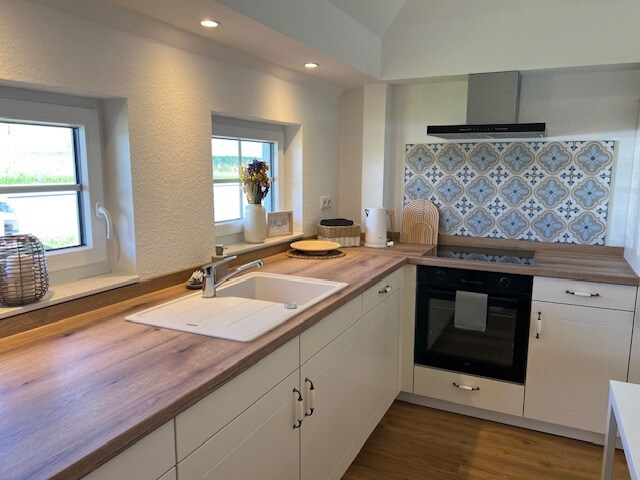 ์ธ์ธํธ ํผํฐ ์ค๋ฉ (St. Peter Ording) ๊ณผ ๋ท์จ (Bรผsum) ์ ๊ด๊ด ๊ฑฐ์ ์์ ์กฐ๊ธ ๋จ์ด์ง ๊ณณ์ ์๋ ์ค์์คํ ๋ฅด์ค (Oesterwurth) ์์ ๋ง์ฌ (Marsch) ์ค์ฌ๋ถ์ ์์นํ ๋ฆฌํ ํ๋๋ (Little Homeland) ๊ฐ ์์ต๋๋ค. 80m ยฒ ๋ฉด์ ์ ์ํํธ๋ 2017๋ ์ ์์ ํ ๋ฆฌ๋ ธ๋ฒ ์ด์ ๋์์ผ๋ฉฐ 1,500m ยฒ ๊ท๋ชจ์ ์์ ๋ทํธ์ ์๋ ์ค๋๋ ์๋ฐฐ์ถ ํ๊ฐ ๋ฒฝ์ ์์ต๋๋ค. ๋ณ๋์ ์ถ์ ๊ตฌ, ํ๋์ ์ด๊ณ ์๋น๋ ์ฃผ๋ฐฉ, ๋์ ์์ฌ ๊ณต๊ฐ๊ณผ ๊ฑฐ์ค, ์นจ์ค 2๊ฐ (๋ํ ๋๋ธ ์นจ๋ 1๊ฐ + ์ด์ธต ์นจ๋ 1๊ฐ) ๊ฐ ์์ต๋๋ค.