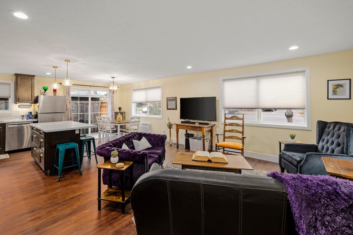 희귀하고 상징적인 미드 센추리 하우스에서 여행을 즐겨보세요. 빛으로 가득한 미니멀리즘 스타일의 개방형 레이아웃을 갖춘 60년대에 지어진 업데이트된 미드 센추리 목장입니다. 아침 커피를 마시든 아트리움에서 책을 읽든, 거대한 레드우드 그늘 아래 뒷마당에서 점심을 먹든, 탁 트인 거실/다이닝 공간에서 저녁 식사를 하든, 집 전체를 단독으로 사용하실 수 있습니다. 나이키 WHQ에서 10분, 비버턴 시내와 쇼핑몰까지 5분, 포틀랜드 다운타운까지 15분 거리에 있습니다.