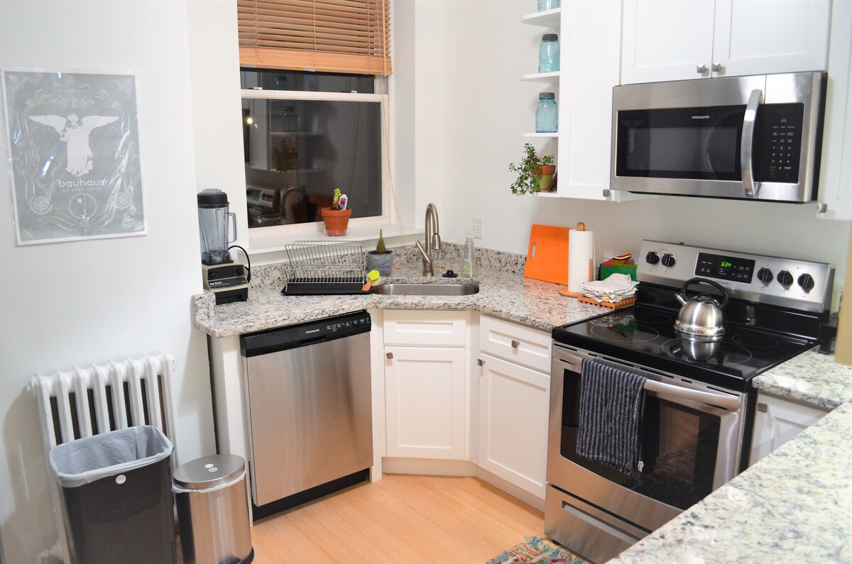 조용한 거리에 있는 유서 깊은 로건 서클 지역의 멋지고 밝은 개방형 침실 1개 콘도로 거의 1,000평방피트의 공간을 가지고 있어 온 가족이 머물 수 있습니다. 백악관, 몰, 박물관까지 도보로 가까운 거리에 있습니다. 1900년에 지어진 이 브라운스톤은 현대적인 시설(천장 조명, 스테인리스 스틸 가전제품, 대나무 바닥)과 역사적인 특징(오리지널 노출 벽돌 및 트림)을 조합하도록 세심하게 리모델링되었습니다. 따뜻하고 넓고 편안한 숙소입니다. 로건은 워싱턴 DC에서 가장 핫하고 힙한 지역으로 도보 점수는 96점입니다.