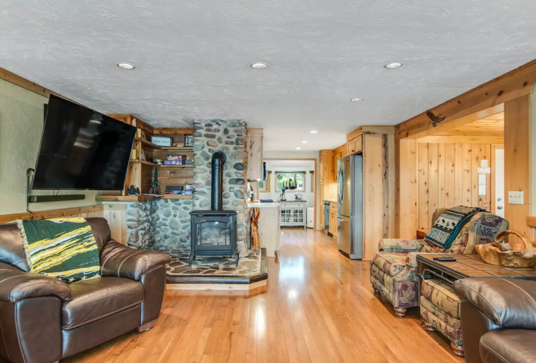 평화로운 노스우드 휴양지에서 휴식을 취하고 긴장을 풀어보세요. 여기 폭스 덴에는 여러분과 가족, 친절한 야생동물들만 있습니다. 이글 리버의 중심지와 매우 가까운 곳에 위치하고 있지만, 밤에는 아무도 보이지 않는 뒤쪽에서 모닥불을 즐길 수 있을 정도로 한적합니다! 폭스 덴은 물가에 있지 않지만 주변 환경은 숲이 우거지고 고요합니다! 아늑한 통나무집은 아름다운 텅과 그루브 소나무 인테리어로 여러분을 감싸고 있습니다. 요리에 필요한 모든 시설이 완비된 주방이 있습니다. 저희는 반려견을 동반할 수 있습니다.