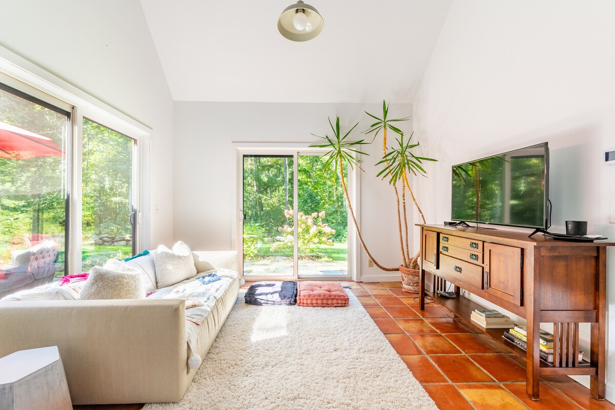 코네티컷 주 켄트 외곽에 위치한 이 개조된 2층 포스트앤빔 럭셔리 전원주택을 즐겨보세요. 켄트 시내에서 불과 9분 거리에 있으며 리치필드 카운티의 최고의 명소와 가깝습니다. 저희 전원주택은 고요한 3.5에이커 부지에 위치해 있으며 보호 삼림에 뒤첨이 있습니다. 새로운 간이 주방, 스파 같은 대형 샤워기가 있는 욕실, 새로운 HVAC, 호텔 같은 숙박 시설을 갖춘 소박한 공간을 현대적으로 단장했습니다. 켄트 스쿨, 캔터베리와 가깝고 낭만적인 휴양지로 적합합니다.