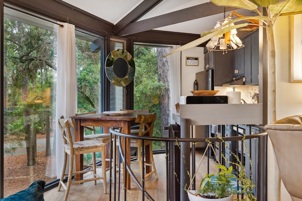 Peaceful treehouse on Wilmington Island. loft39 is a one-bedroom studio apartment, a stylish escape from the downtown Savannah area. Relax in the tree canopy in a spacious private apartment with luxury bedding on a king size bed, high speed WiFi, 2 smart TVs, dedicated workspace, fully equipped kitchen with bar amenities, fully tiled bathroom with oversized shower, separate living and dining areas, and beach supplies! Private off-street parking included. License # OTC-023656