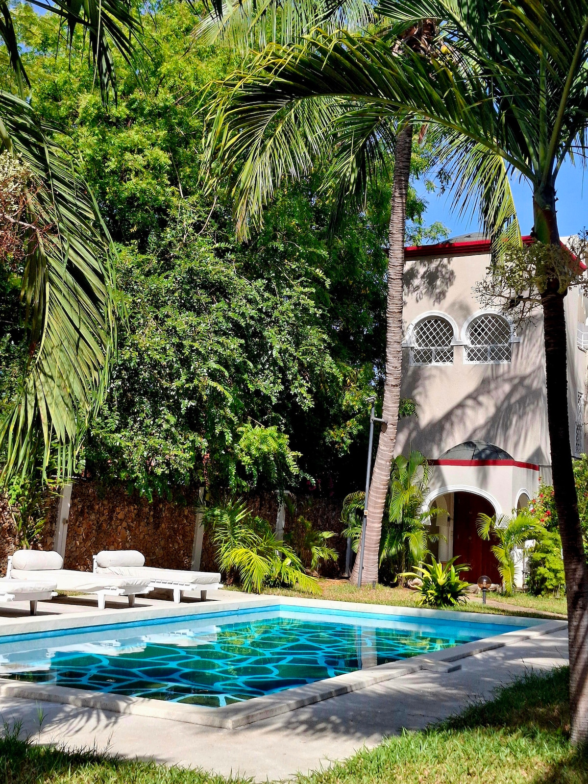 포르타무 트위가 하우스 (Fortamu Twiga House) 는 케냐에서 가장 독점적인 주거지 중 하나로, 오션 브리즈 해변과 사랑의 섬을 포함한 세븐 아일랜드가 내려다보이는 파노라마 수영장을 바로 이용할 수 있습니다. 하우스키퍼와 셰프가 필수 청소 및 식사 서비스를 제공합니다. 숙소는 킹사이즈 침대, 에어컨, 천장 선풍기, 전용 욕실이 있는 3개의 객실로 구성되어 있습니다. 럭셔리한 분위기에서 독특한 경험을 선사합니다.
