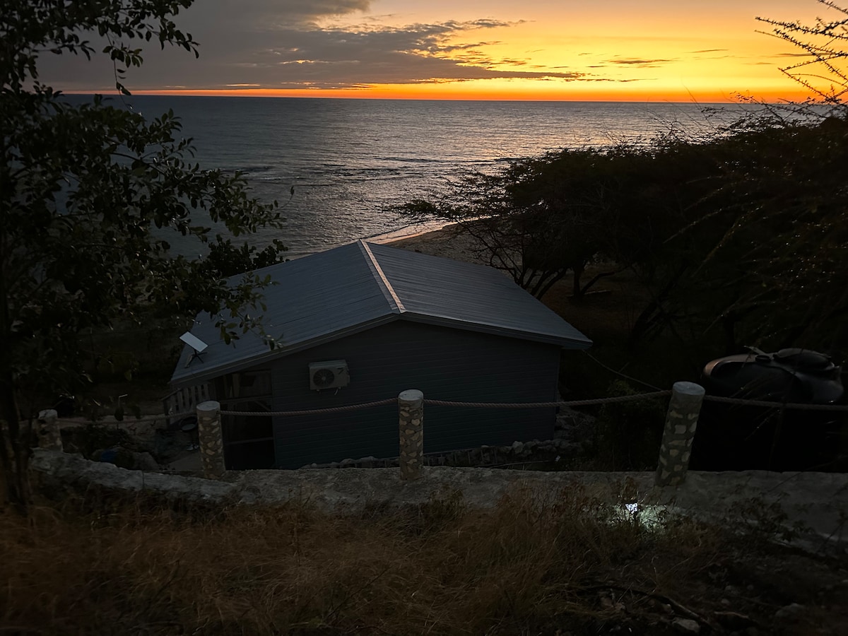 This charming villa room has high ceilings, oversized hand crafted windows, custom double doors and a covered screened porch which adds a comfortable living area great for remote work or just observing the doctor bird floating from flower to flower. The plush queen bed and newly renovated en suite bathroom make this cozy space a dreamy beachside home. This cottage is fan cooled with Hot water shower. Ideal for a solo traveler or a couples weekend away.