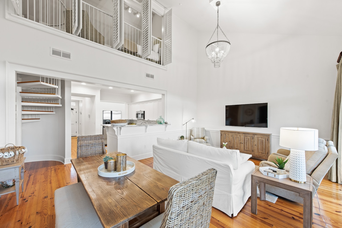 스웰 클럽에 오신 것을 환영합니다! 30A에서 즐거운 시간을 보내기 위해 필요한 모든 것을 갖추고 있습니다. 모닝 커피를 즐길 수 있는 넓은 발코니, 완비된 주방, 킹사이즈 침대 2개와 풀아웃 소파, 스마트 TV, 매력적이고 쾌적한 거실 공간, 30A를 둘러보는 데 사용할 수 있는 새로운 6인용 골프 카트! 숙소는 크고 친절한 리조트 수영장까지 도보로 약 30초 거리에 있으며, 전국에서 가장 아름다운 해변까지 금방 이동할 수 있습니다. 엔터테인먼트, 레스토랑, 상점이 길 건너편에 있는 더 빅 칠에 있습니다.
