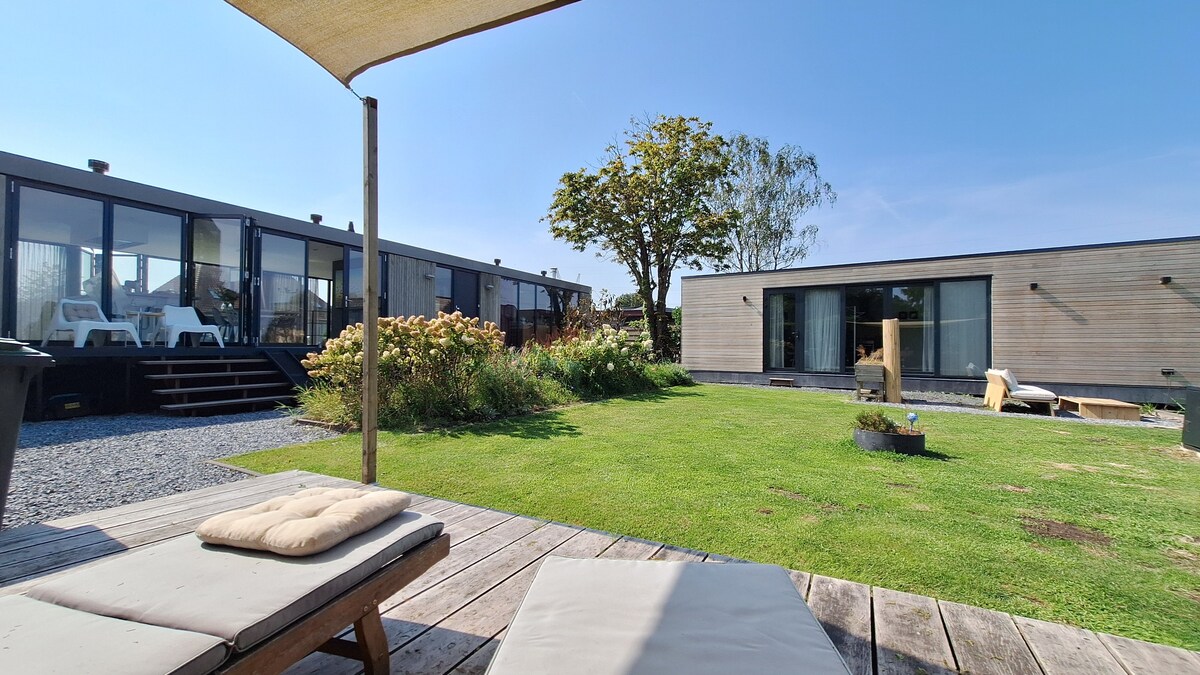 Bring the whole family to this great place with lots of room for fun! The downstairs offers an open kitchen and dining space, with living area and TV. The double patio doors open up to our garden with two benches and a table perfect for outdoor eating. Plus kids can doodle with chalks on the patio while parents enjoy a gin & tonic on the cosy seating. We just installed a new bathroom! Plus you're 5 minutes from the beach and 20 mins from Amsterdam!!