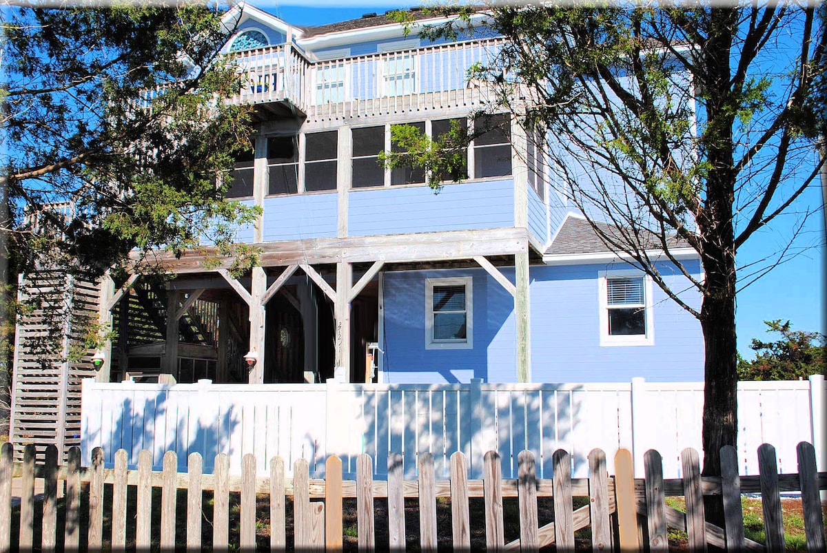 장기 숙박 시 할인 가능 대서양과 팸리코 사운드까지 도보로 갈 수 있는 거리에 있는 아늑한 비치 하우스를 즐겨보세요. 해변 여행객, 카이트보더, 수상 스포츠 애호가 또는 가족 및 친구와 함께 휴가를 보내기에 안성맞춤입니다. 내부에는 거실 2개가 있으며, 한 곳에는 당구대와 바가 있습니다. 각각 프리미엄 케이블과 서라운드 사운드가 구비된 대형 스크린 TV. 데크의 온수 욕조에서 휴식을 취하며 별 구경을 즐기세요. 트라이 빌리지에 위치하여 식당 및 상점에서 가깝습니다.