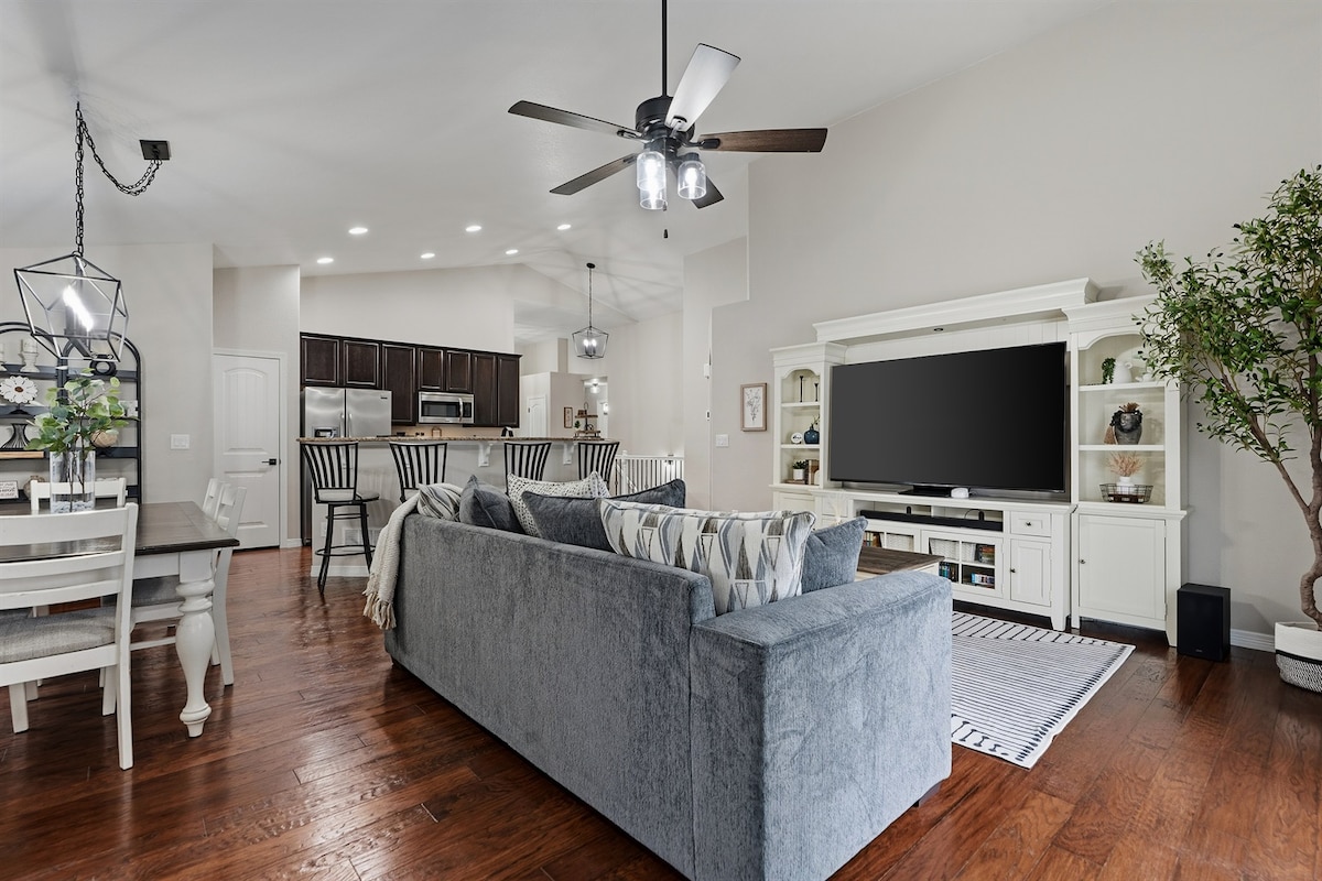 This West Greeley home is the perfect blend of fun and relaxation. Our home sleeps 10 comfortably and is tastefully furnished with cozy couches, nice comfy memory foam mattresses, games , fully functional kitchen with everything you’ll need to enjoy cooking and meals together, outdoor gathering area, hot tub and game room. It really is a home away from home. Located 1 block from the park, and a 1 min. drive to Centerplace (shopping, restaurants, entertainment) you’ll be close to everything.