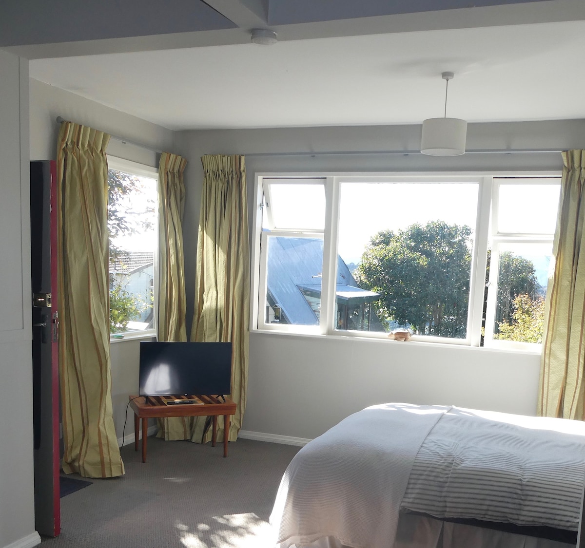 Welcome to our heavenly haven. You will enjoy your own private space with private entrance in the downstairs area of our beautiful refurbished church. Lovely spacious and stylish bedroom with stunning feature windows, a full bathroom and separate living area. We provide Freeview TV, Netflix and a Chromecast. Continental breakfast is provided. Drive on access to your door with free parking. The bus stop is a few minutes away. A short drive to Victoria University, Zealandia and the Wellington CBD.